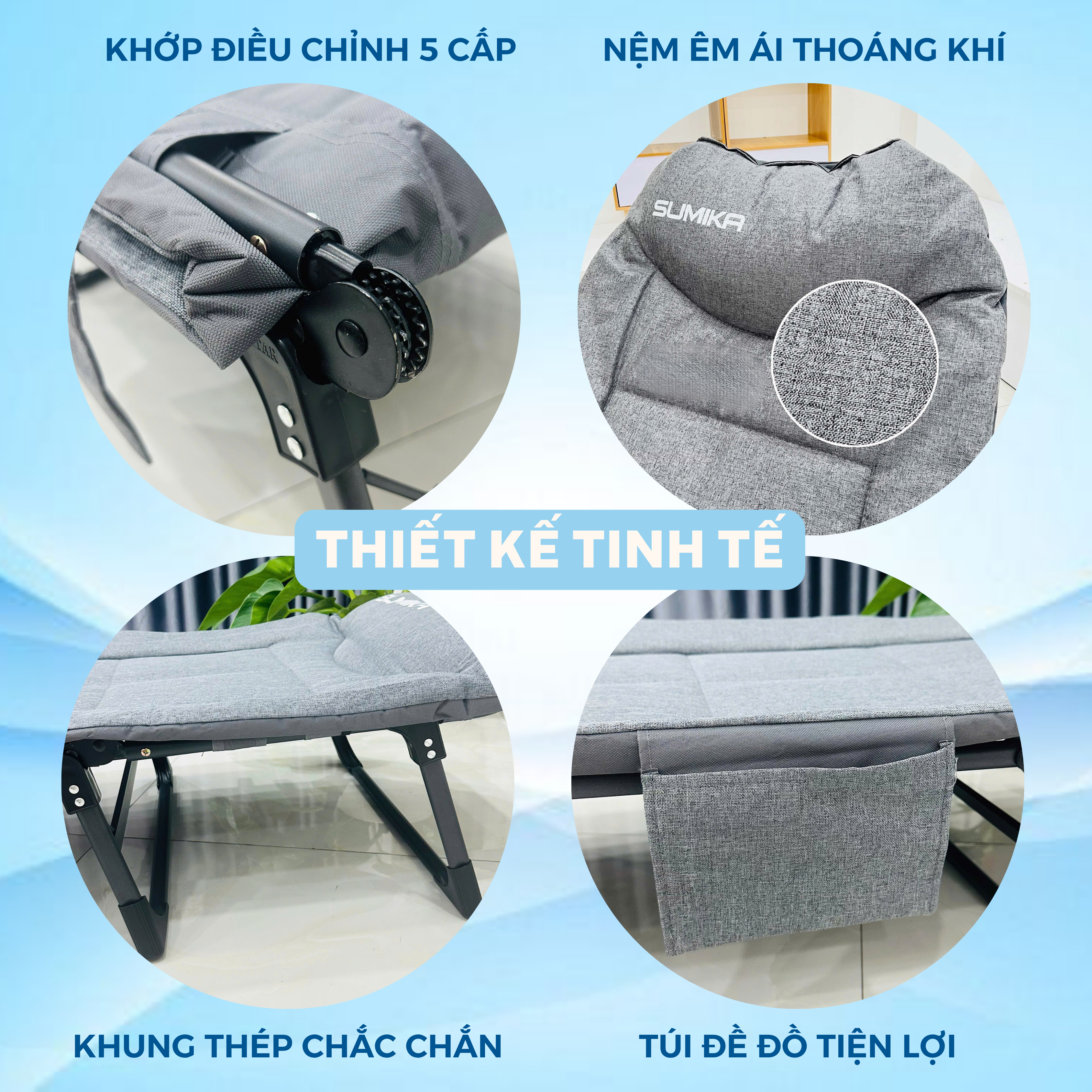 - Giường xếp gấp gọn đa năng Sumika 181 chịu được tải trọng lên đến 300kg nên sử dụng phù hợp với mọi đối tượng, có thể nằm được đến 2 người, sử dụng để nghỉ ngơi, đọc sách,...đều rất tiện lợi.