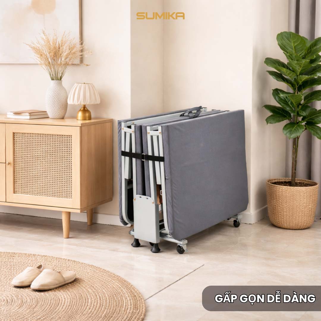 Với thiết kế giường đơn gấp gọn SUMIKA 386 phù hợp với những không gian nhỏ hẹp như căn hộ, chung cư, văn phòng,… chiếc giường kiểu dáng gấp gọn thông minh SUMIKA không chỉ đem đến sự thuận tiện khi bày trí, mà còn giúp bạn thoải mái nghỉ ngơi, loại giường đa năng này có thiết kế vô cùng tiện dụng và trọng lượng vừa phải, bạn có thể gấp gọn và dễ dàng di chuyển đi nhiều nơi. Ngoài ra, mẫu giường xếp gọn này khá phù hợp với những không gian hạn chế như văn phòng công ty, hay phòng trọ. Với những nơi văn phòng chật hẹp, thì chiếc giường này là giải pháp tối ưu cho những giờ nghỉ giữa ca của nhân viên, chỉ cần thêm một tấm đệm êm ái sẽ giúp người sử dụng như đang được tận hưởng giấc ngủ thoải mái ngay tại nhà.