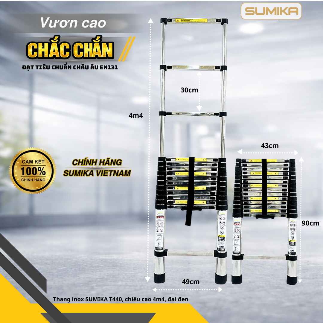Nên mua thang inox của thương hiệu nào là tốt nhất? Câu trả lời mà phần lớn mọi khách hàng đều nhắc đến đó chính là Sumika. Bởi lẽ đây chính là cái tên được xếp vào cấp bậc hàng đầu tại Nhật Bản. Mỗi sản phẩm thang inox của Sumika đều đáp ứng về mặt chất lượng, áp dụng quy trình sản xuất khắt khe đạt tiêu tiêu chuẩn Châu Âu. Để quý khách hàng có thêm một sự lựa chọn, hôm nay SUMIKA Việt Nam xin giới thiệu một chiếc thang đang nhận được nhiều sự quan tâm nhất đó chính là thang rút inox Sumika T440.