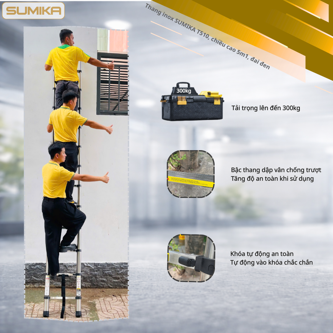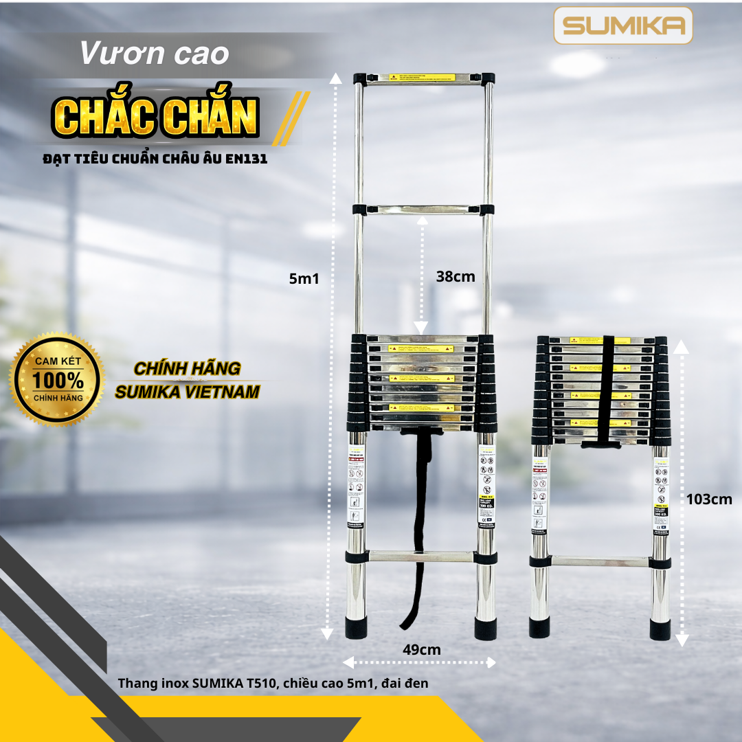 Nên mua thang inox của thương hiệu nào là tốt nhất? Câu trả lời mà phần lớn mọi khách hàng đều nhắc đến đó chính là Sumika. Bởi lẽ đây chính là cái tên được xếp vào cấp bậc hàng đầu tại Nhật Bản. Mỗi sản phẩm thang inox của Sumika đều đáp ứng về mặt chất lượng, áp dụng quy trình sản xuất khắt khe đạt tiêu tiêu chuẩn Châu Âu. Để quý khách hàng có thêm một sự lựa chọn, hôm nay SUMIKA Việt Nam xin giới thiệu một chiếc thang đang nhận được nhiều sự quan tâm nhất đó chính là thang rút inox Sumika T510.